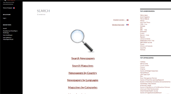 محرك بحث يتيح الوصول إلى صحف ومجلات عبر العالم، بثلاث خيارات للبحث: حسب البلدان؛ 2) حسب الأنواع؛ حسب اللغات: